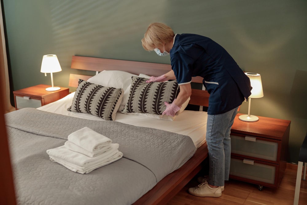 Neatly arranges bedding and refreshes the sleeping area for a clean and organised look.